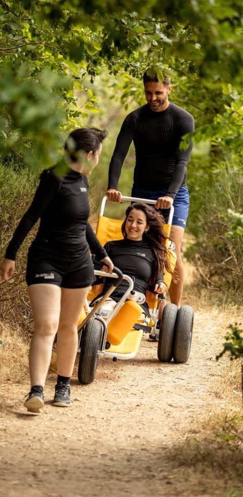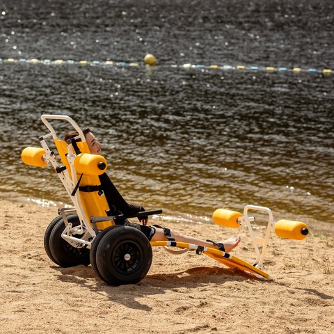 SOFAO è una carrozzella da bagno e di accesso in acqua che permette ad un accompagnatore di condurre il suo passeggero dall’automobile al mare attraversando la spiaggia, senza nessuno trasferimento e senza speciale accesso adattato.